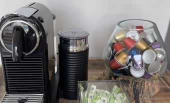 The resort consists of 4 studios. Each studio has a mini-refrigerator, water boiler, coffee machine & safe. There are two Bathrooms. Each bathroom is located in the middle and shared between the 4 studios. Studio A & B shares 1 bathroom & Studio C & D shares 1 bathroom. Each studio has its private entry. The bathroom also has a private entry.