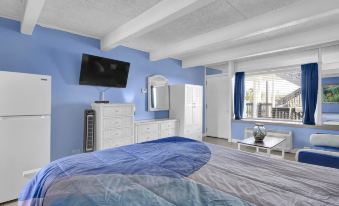 The well-equipped kitchenette includes a cooktop, microwave, full-size refrigerator, and dishwasher—perfect for preparing meals or storing your favorite beachside snacks. Sip your morning coffee while taking in the peaceful water views, or head out to explore the area's vibrant culinary scene.