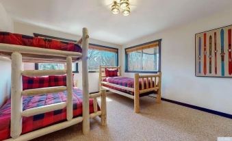 二樓 - 所有臥室都位於此樓層,並配有大衣櫃空間。主臥室是一間大房間,配有一張特大號床、私人休息區和一台 65 英寸智能電視,電視可連接 Wifi 並隨時供您登錄流媒體頻道。臥室 2 最多可容納 4 位顧客,配有一張單人床和一張全尺寸雙層床以及一張額外的單人床。這間臥室設有三個定製窗戶,讓顧客可以欣賞到令人驚歎的山景。浴室 2 經過全面翻新,位於臥室 1 和臥室 2 之間,方便出入。臥室 3 位於走廊盡頭,配有一張舒適的大號床,大窗戶可欣賞樓上的景色。新的洗衣機和烘乾機位於此樓層,隨時可用。