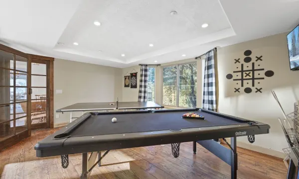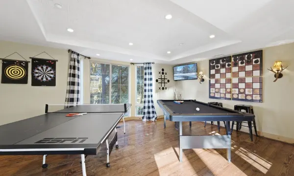 Amazing cabin few miles from mt high that combines traditional cabin feel with modern 5 star luxury touches like heated bathroom floors, towel heater machine in the master and many more! We could easily tell this was a home that was thoughtfully designed and very well cared for. Kids loved the game room and the dining area!