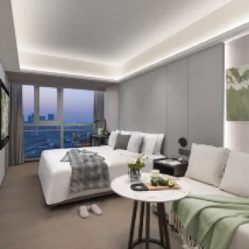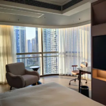 可以算是目前為止住過最滿意的套間,比預想中的還要寬敞舒適,很新,空間設計合理,非常適合帶家人入住,長輩很喜歡,旅行質量大大提升,辦理入住時要交兩千元按金也覺得是值得的。設施齊全,前台響應及時。基本上需要什麼,酒店都已經配備好了。樓下就是商場,吃飯買東西非常方便,有服務機器人,也有地鐵站。早餐品種很多,是景觀餐廳,體驗感很好,有本地特色,起不來早的我們,也在酒店體驗了一把武漢的過早,下次來仍會選擇這家酒店。