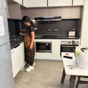 非常棒,房間面積大,乾淨整潔。房間內有洗衣機電冰箱電磁爐等等多個設施,而且房子就在未來中心裏面,購物,吃飯非常方便。地下一層就是地鐵4號線。