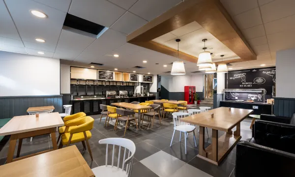 飯店餐廳提供自助早餐服務,主推中法美食,賓客可以品嚐到可頌麵包、法式奶酪、果醬等法蘭西本土美食,以及中式美點。飯店吧檯提供各類精選葡萄酒、烈酒、雞尾酒及花式咖啡,還可以舉辦各類中、小型會議及定製私人派對。飯店的社交空間提供可以獨自靜心思考、辦公或與同伴盡情的交流探討的工作區。還有自由舒適的社交空間,配備了許多有趣的遊戲設備,提升互動體驗和社交活動共享,是結交新朋友的好去處。