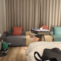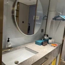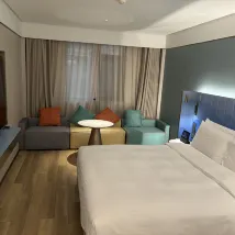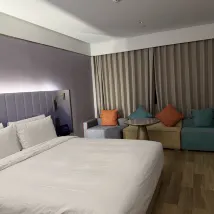 設施:小度智能、化粧鏡、小冰箱、圓桌、可移動小板凳等等,都很人性化,住的很舒心。 衞生:整體很乾凈,浴袍都是有防塵袋裝好的~ 環境:酒店香香的,一樓大廳還有花花,三樓有健身房… 服務:酒店人員服務特別好,親自出來告訴我們怎麼停車,水果送到房間,退房時給小零食和礦泉水等等行動都很讓人暖心❤️ 養心夜膳:晚上有熱牛奶、粥、甜湯等等,對了,酒店小冰箱裏麪還提供了飲料,點贊。