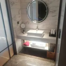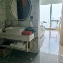 衞生:非常乾淨,整個房間一塵不染,浴室洗手間洗手池都很乾凈。 設施:寬敞,62樓視野也好,沙發椅子桌子都有,整個佈局也很寬鬆。 服務:服務超級棒,打掃阿姨也很客氣熱情。