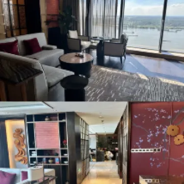 這家華邑坐擁一線江景,位置便利,設施齊全。36樓有酒廊,五樓🈶健身房、游泳池。樓下便利店、商場,可以説大部分需求都可以得到滿足。美中不足的是這兩天天氣不太好,景色受到了影響,可視距離不是很好,否則可以稱得上完美。