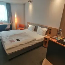 辦理入住時受到了友好的接待。結果發現停車場裡的充電站已經不在了。考慮到這裡也有很多商務人士,這真是一個遺憾。停車場入口在頂層,出口在七樓。房間裝潢得不錯,考慮到它已經有35年的歷史了,但空調卻很糟糕。室外溫度25攝氏度,這根本不算是空調!開窗的話,外面的噪音太大了。房間裡以前有的小冰箱也不見了。總而言之,不算差,但下次我不會再來了。