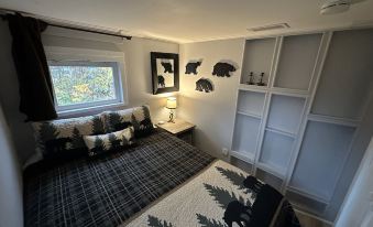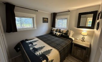 Sleeping 2, the cute bear-themed cabin has one bedroom and one full bathroom for your convenience. The bedroom has a comfortable queen sized bed. The bathroom has a toilet, sink, shower and is recently renovated.