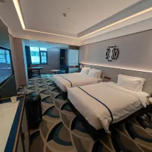 這次入住體驗太讚了!必須給酒店一個五星好評!先説衞生,真的無可挑剔。房間一塵不染,床品潔白如雪,沒有一絲褶皺和異味,衞生間的瓷磚亮得能當鏡子,洗手枱、馬桶、淋浴區乾乾淨淨,沒有一點水漬和污垢,就連角落都打掃得非常仔細,住得超級安心。房間設施也很棒,床軟硬適中,睡起來特別舒服,一夜好眠。衞生間乾濕分離,淋浴噴頭出水流暢,熱水供應穩定,洗漱用品質量也不錯,用起來很舒心。還有智能設備,操作簡單,給入住增添了不少便利和樂趣。前台圓貝服務超貼心,不僅幫我升級了房型,還手寫了本地美食攻略。