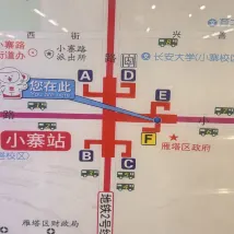 就在小寨地鐵站旁邊A出口旁邊不用2分鐘就到太方便啦!時尚簡約年輕的酒店。性價比高!前台服務員好親切,早餐阿姨細心幫我煮餃子。不吵鬧好舒服。有訓練過的真的不一樣。床和枕頭都好舒服。就一件事情想建議老闆:前台服務員可以穿的年輕點比方説酒店LOGO的T恤或者POLO。配牛仔褲或者牛仔裙。不要穿襯衣打領結好像回到60年代好老土啊!天啊!跟酒店裝修形象格格不入。髮型可以時尚不誇張就好。展示女生的自然年輕。也建議可以化粧淡淡的就好。一定要塗口紅不要血紅就好。建議淺桃紅色看的舒服。