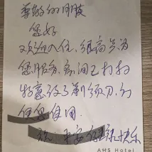 地理位置很好,出門右轉就是小寨地鐵站,周邊吃的很多,外賣也很多,酒店會讓機器人送上樓,很方便。 住了三晚,上午附近裝修會有點吵,但因為過來西安玩的,腿的很累所以睡的還不錯。 要着重提下服務,阿姨打掃的很乾凈,我續住的房間有留小紙條,阿姨都按照我要求打掃,也給我留了小紙條,哈哈哈好可愛的。 前台服務也很好,出去玩寄存個東西啥的很方便。 二樓的漢服館衣服很漂亮,大家住酒店的時候可以試試☺️