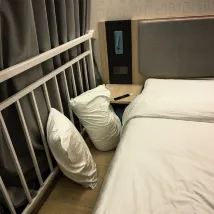 1. 面積狹小:不知道是不是因為到得晚所以衹剩尾房了,面積很小配不上價格,有一個很大的柱子佔據很大的面積,也遮擋了2/3的窗户位置,整體房間顯得很逼仄且狹小 2. 隔音差且有噪音:早上七八點就有保潔阿姨打掃隔壁房間咚咚咚的聲音,十分影響睡眠質量 3. 裝修一般:明明是25年開業,豐富是5年前裝修的水平,潔凈程度也一般 總體來説沒住過質量這麼差的如家。