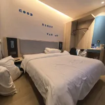 國慶節臨時決定來廈門,因為帶着父母所以要考慮一下酒店地理位置,這家店離地鐵站非常近,走路就就一分鐘,門口還有公交站,交通很便利。酒店是單獨的樓,不是和其他酒店合用一棟,所以電梯完全不用等,很便捷!房間大小比較小,但是浴室洗手間空間足夠大,而且環境很乾凈,不錯!酒店的早餐味道不錯,品種很多,而且是現做的,點贊👍酒店前台態度也不錯,還給贈送了禮品👍 總體來説是很滿意的一次住宿,雖然離中山路那裡比較遠,但坐地鐵很快,交通很便利!而且因為遠離景點所以很安靜,外面也不擁擠,在國慶節來説性價比還是不錯的,非常推薦帶孩子長者的來入住!