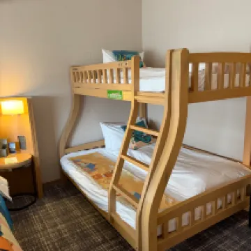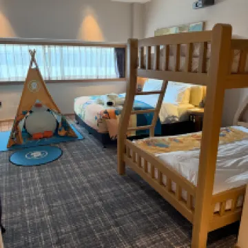上下鋪,三個孩子的家庭很好睡,價格還好,不會很貴,住過很多次了,早餐種類稍微有點少,建議可以增加一些。
