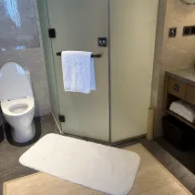 酒店衞生還可以,設施用料不錯 馬桶是toto 不過不是智能的 差點意思,房間佈局非常好,床鋪軟硬度剛好 炎熱的夏天冷氣給力,不愧是建發旗下的品牌,上檔次。還有智能機器人送餐,三樓有健身房,有點缺憾是地理位置,不在島內,適合自駕。總體可以打85分。