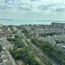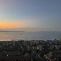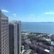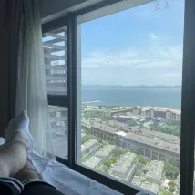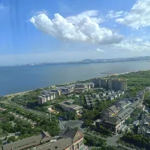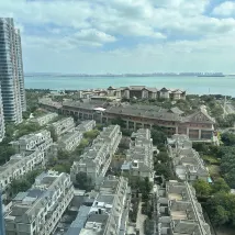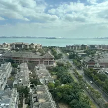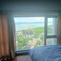 Отличные апартаменты! Регистрация через WeChat. 20-30 минут до аэропорта. Останавливался уже два раза - один раз с видом на море, второй раз с видом в город. Номера большие и есть все что нужно: холодильник, стиральная машина, два кондиционера, удобные большие кровати, обеденная зона. Прямо в доме есть мини-маркет. В доме 4 лифта. На территории прогулочная зона, лавочки, детские зоны. Сама территория закрыта от посторонних (вход по face-id) но пускают доставку еды, поэтому можно смело заказывать еду, принесут прямо в номер. За территорией рядом куча магазинов, кафе и разнообразного стритфуда!