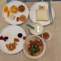 房間略微有一點吵,可能是靠街道,但是有提供耳塞和眼罩,雖然耳塞恰好沒了🤣觀景視角很好,有喜歡的各種老樓,很有煙火氣。之前住華住會的酒店不是沒訂早餐就是訂了沒起床,這次第一次吃到漢庭早餐,真的很不錯!牛肉粉很好吃很好吃很好吃!還有李子也很甜,一點都沒有酸澀,選品很好😘離古城也不是很遠,溜達着就過去了。從襄陽東坐k15的公交站離酒店也很近,走着就來了,很不錯很不錯!