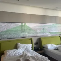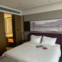離高鐵站打車15分鐘,在一個路口。正對面有一個特斯拉充電站,步行十五分鐘還有一個萬達。酒店房間很大,樓層25樓,這次給了25F的還行。房間空調可以單獨製冷也很大。然後電梯比較少,高峯期要等比較久,畢竟有25F。早餐一般般吧感覺和連鎖酒店沒差,能吃就行。酒店門口有很多停車位,打車也會開到酒店正門口