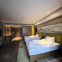 房間寬敞,物品整潔。客服人員特別熱情!特別是早餐豐盛!還帶孩子去了健身房!不錯👍。一些細節也很到位。比如健身房配了乾淨的毛巾和礦泉水!