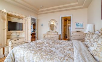 Bedroom 1: One Queen Bed, TV, One Full Bathroom