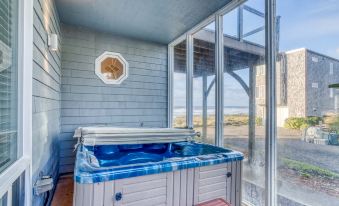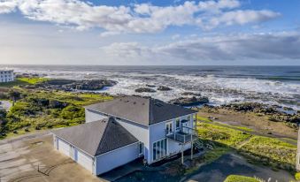 Crashing surf, ocean breezes and two balconies overlooking the ocean are yours with a stay in Arbor House North. This bright, beautiful home is ideal for sharing with family and friends, since each of its three bedrooms has its own full bathroom, ocean view, and balcony access. You’ll love gathering in the upper-floor, ocean-view great room, with comfy seating, TV for everyone’s enjoyment. A fully equipped kitchen and formal dining table, plus a barbecue on the balcony, give you all you’ll need to dine in. The wind-screened balcony also has an enclosed hot tub, so you can soak to your heart’s content, regardless of the weather. A garage game-room on the lower level includes a pool table, foosball and ping-pong for friendly competitions between walks on the beach. You’ll find the famous 804 Trail, which traverses the rocky shoreline of Yachats all the way to the Yachats River estuary, runs right in front of the home.