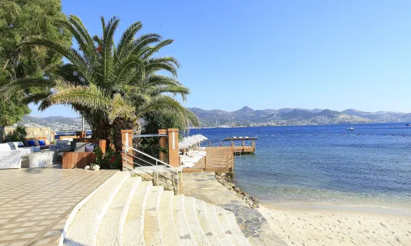 Небольшой пи , уютный буи отель притаился среди холмов. Имеет собственный пляж с большим количеством лежаков расположенных как на пирсе, так и на берегу. В отеле всего 32 номера, лежаков штук 100, может даже больше. Днём еще лежаки ставят на небольшую платформу, вечером их убирают и выставляют на неё столы где проходят ужины. Столы очень красиво сервируют. Стены небольших номеров отделаны деревянными панелями, в крошечном санузле отделка под травертин. Сантехника Duravit. Все гармонично и приятно глазу. Территория небольшая, но удобная. В районе главного ресторана много зелени. В отделе есть библиотека с большим количеством книг. Книги на полках в лобби. В целом впечатление положительное. Единственный момент, во время уборки забывают добавлять воду, чай-кофе и гигиенические принадлежности. После обращения на ресепшен, все быстро приносят.