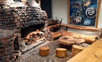 A warm inn with a fireplace and 24-hour naturally fed hot spring bath