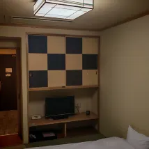 房間沒有瓶裝水的,都需要自己去買水和自己拿牙刷之類的,而且睡的房間有蜘蛛,地毯上也有小垃圾。但是廳內花園的環境不錯,可以拍照片,其他一般般,而且強制交温泉税(哪怕不要泡也要交)