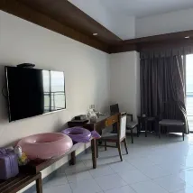 房間很大,正向海景,陽台看日出觀感很好,頂樓無邊際泳池非常出片,樓下有小童泳池和成人泳池,都很大夠玩了,酒店所在的沙灘過去也非常方便,沙灘有安全線,價格也實惠,整體還是很滿意的。