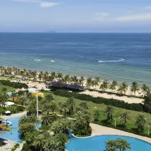1.前台服務態度好,辦理入住效率高。 2.設施齊全,停車方便,充電樁充足。 3.位置優越交通便捷,步行幾百米去附近飯店吃海鮮方便又美味。 4.房間寬敞明亮乾淨,酒店有多個泳池及水上樂園,比較標準的泳池有 1 個,適合小童的水上樂園就有 3 個,頂層有一個天際泳池,適合觀光打卡擺拍的住客。