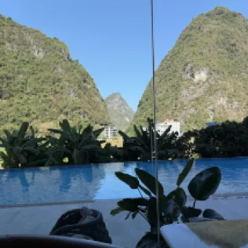 前面已經入住了二天,感覺特別特別好,景色太美了,又續住二天,真的是陽朔寶藏級的酒店,大山周邊環境太讚了,空氣超讚,負氧離子超高,有很多帶着長者小孩入住,謝謝小毛,阿發,粥粥,COCo熱情温暖親切貼心的服務,,酒店有免費的飲料和純凈水!有個特別漂亮的游泳池,酒店有ABC三座房間!離店時前台小帥哥阿發又送了當地特產,謝謝值得入住!超讚!