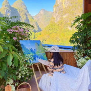 風景真的超美!沒有讓我失望,彷彿住進了山水畫裏,山景大落地窗直麪喀斯特峯林! 酒店還提供免費寫真拍攝,提供民族服飾還有專業的攝影師拍攝,超級出片!酒店的mini吧飲料茶葉礦泉水都是免費的!酒店附近還有很多好玩的景點!早餐下午茶也超級好吃!