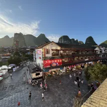 位置在西街的中央,下樓就是熱鬧的步行街,逛逛吃吃很方便。陽台可以看到遠處的山景,很美。屬於性價比比較高的酒店。
