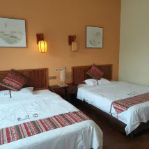 Ele sitio es maravilloso, con unas vistas espectaculares y un entorno muy rural. Está bastante alejado del centro de la ciudad, pero a nosotros eso nos parece genial. Te puedes alquilar ahí mismo una scooter por 30 yuanes al día o una bicicleta y ya te mueves donde quieras. La dueña habla inglés, dato muy importante. Te informa y te ayuda a lo que necesites. La comida también muy buena, somos vegetarianos y nos cocinaron lo que les dijimos. Volveríamos a alojarnos en este sitio sin dudarlo.