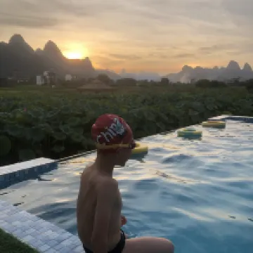 位置離遇龍橋很近,能步行過去看金龍巡遊,早餐米粉很好吃,是來桂林陽朔玩吃的最好吃的米粉,傍晚在樓上觀景台看美景,在樓下泳池游泳,小朋友玩的很痛快,租個電車去富里橋轉轉,很方便,小姐姐有求必應,想去哪玩有什麼問題都可以耐心解答。