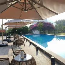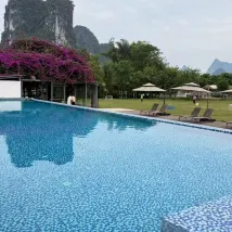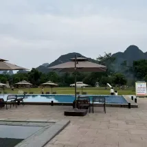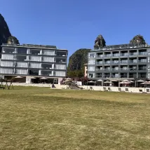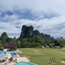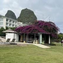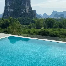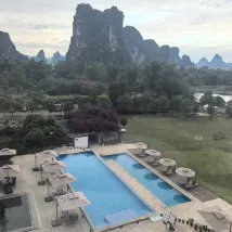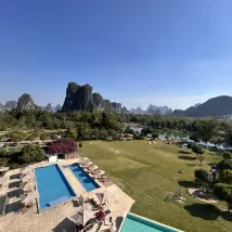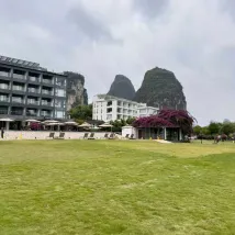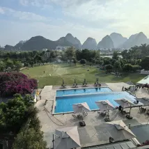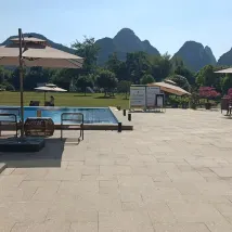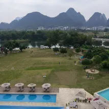 一家開在風景裏的酒店,位置在十里畫廊中段,草坪延伸至遇龍河畔,整個風景美如畫,4個泳池,夏天來游泳肯定很棒,還可以踢足球、射箭、玩飛盤,河邊還可以釣魚,酒店內活動就很豐富,酒店房間裏還有免費的飲料和礦泉水,一次性浴缸套和馬桶墊也有配備,床品很乾凈舒服,睡得很好。服務人員態度也很好,親切熱情,遇到都會微笑打招呼,讓人感覺很舒適。酒店的早餐品種蠻多的,有桂林米粉,味道不錯。會推薦給朋友,下次有機會還會再來~