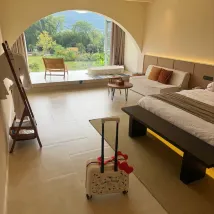 這次來陽朔選這家民宿真的太讚了!超級治癒的寶藏酒店,簡直是住進了山水墨畫裏。從預訂酒店的那一刻起,每一處都藏着細心和用心,真的感受到了賓至如歸。酒店管家能規劃行程,預訂優惠門票,真的是一站式輕鬆出行,酒店路口就是公安局,安全感滿滿,大草坪直接連着遇龍河,在酒店看竹筏順流而下,羣山環繞,真的很愜意,還有足球飛盤弓箭,釣魚萌寵餵養,魚鷹表演親子手作等一系列好玩的,在酒店就可以玩一天。房間裏有浴缸,還貼心的配了一次性浴缸套,飲料礦泉水全部免費,全屋智能控制,連馬桶墊都準備好了。這種小細節太加分了,處處體現為住客着想的感覺,讓人倍感温暖,每一個工作人員都會親切問候,臉上洋溢着真誠的微笑。讓人住着特別有歸屬感,也很放鬆,下次有機會還會再二刷的。