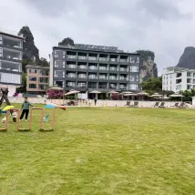 【親子度假酒店】【10000平米大草坪】【遇龍河景色】尊敬的客人,非常感謝您對我們酒店的認可與喜愛!看到您在酒店賞美景時感到愜意,我們由衷開心 。酒店前院就是遇龍河可以看到羣山環繞 綠水環抱的優美景象。 酒店提供豐盛的營養自助早餐,酒店坐落於遇龍河畔,擁有目前陽朔最大的户外花園,超大的草坪可以盡情的奔跑、踢球、射箭,還有魚鷹表演、萌寵餵養、親子手作活動等一系列的項目,讓您在酒店就能玩一整天不枯燥。期待您的再次下榻!