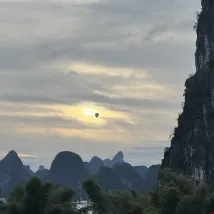 酒店風景非常美,在房間就能看到日出,睡進畫裏,親子遊樂設施豐富,旅拍體驗非常棒,拍攝環境優美,攝影師專業,隨手一拍就是大片,置身於一副山水畫裏,酒店外面就是遇龍河,時不時就有竹筏漂流而過,天氣好的時候水裡倒影着羣山,美不勝收