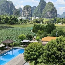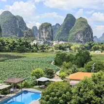 Wonderful hotel with great view, facilities and services. Good breakfast and amneties. The staff was extremely helpful with our requests and some speak English. A lady rents electric scooters and the hotel has thaï-chi and yoga class, among other activities. The thaï-chi professor was very nice. Didis have easy access to the hotel so transport was easy. Ten Mile Gallery and bike roads along the Yulong river are near.