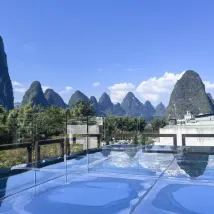 這是我們第一次來桂林、陽朔,這酒店是這次的旅程的其中一個亮點 - 在微信設立管家群從旅程未開始便已經照顧我們,到陽朔站下了車便已經等我們出來,要去鎭內的其他地方也都接送,到埗又有下午茶準備好,前台小姐又提醒我們要不要點夜宵及常問候有没有什么需要及建議我们去參觀的地點等,都讓我们感受到本地人的热情。周圍景觀也很優美,尤其頂樓的景觀,望到山和河,身心立時放鬆。此外,我們一般不會在酒店內的餐廳用膳,這次嘗試接受建議在他們旁邊的餐廳吃晚飯,真的點讚,尤其窑雞及竹筒飯👍🏻期待下次再入住,或者他們在遇龍區的另一酒店。