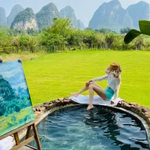 桂林月墅温泉酒店——住進山水畫裏的神仙體驗! 國慶兩晚沒住夠!陽朔之行最驚喜的發現,必須是隱於十里畫廊的月墅温泉酒店!推窗即見喀斯特峯林,遇龍河在眼前蜿蜒,清晨被鳥鳴喚醒,傍晚看落日染紅山尖,彷彿住進了一幅會呼吸的水墨畫。 別墅全帶獨立私湯,我們住的“星空房”泡池直麪峯林,夜晚邊泡温泉邊數星星,氤氲熱氣裏全是治癒感。泡池每日消毒,搭配漂浮下午茶,拍照美到刷爆朋友圈!房間是桂北民居混搭日式禪意,實木傢俱、電動天窗,細節處處顯品質。 管家服務超貼心,免費接送西街、連夜宵的桂林米粉都香到舔碗!周邊遇龍河漂流、月亮山徒步步行可達,傍晚騎車穿過稻田,像闖進宮崎駿的動畫。交通無論去哪都太方便了! 私密泡池+山景+星空,浪漫值直接拉滿!來陽朔必住,姐妹們給我閉眼沖!最好的月墅!最好的美景!最好的服務! 設施:巨好巨方便! 衞生:巨乾淨巨整潔! 環境:巨浪漫巨特色 服務:你就品吧!啥是家的感覺!