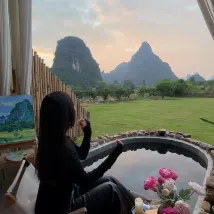 陽朔之旅,選擇了月墅度假酒店,沒想到驚艷到我們了。首先是服務。在我們入住前一天,工作人員就給我們建了個羣,問我們什麼時候到,告訴我們怎麼停車。到了以後,幫我們拿行李,安排房間,還放好了水果。提前給我們房間的泡池放好了温泉水。其次是環境。簡直太棒了,窗外就是美景。不用出房間,就能欣賞到陽朔的山水。另外是餐食和活動豐富多彩。每天都給客人精心準備了豐富的下午茶,還組織我們製作團扇。晚上還準備了自助燒烤🍖每天的宵夜也非常用心。我們退房去龍脊梯田,酒店還贈送了禮物。點贊👍推薦
