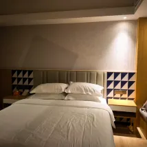 設施:酒店很新,設施不錯,前台咖啡機隨時享用現磨咖啡。 衞生:房間乾淨,洗浴用品也不錯。 環境:離西街不遠,旁邊餐飲超級方便,有蜜雪冰城、趙一鳴零食店。 服務:服務員很專業,態度友好。