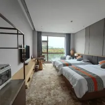 不得不説,機場旁這個酒店確實驚艷到了。首先説環境美,園林小院帶着優雅,酒店設計穩重大氣,房間特別大,舒適度高。乾淨衞生沒的説。我們入住親子房,三張獨立1.2的床還有不小活動空間,兩大兩小感覺不侷促。忘了拍照,酒店圖片和實際温和可以借鑒。關鍵在於細節把控很到位,衞生間配備一次性馬桶墊,小童洗漱用品,還有針線包。房間燈帶還有小鐘表,方便客人看時間。 服務温馨宜人 辦完入住有位戴眼鏡的小姑娘一直引領我們到房間,當我們感覺床品發潮,因為這幾天宜昌一直下雨,霧氣很重,客服部的一位戴眼鏡的女經理及時來和樓層服務員進行解決,讓我們也非常滿意。走的時候一位姓馬的經理主動詢問服務滿意度並送上車。這個酒店的服務讓我們的宜昌之行獲得滿意收官。 送機接機二選一服務:我選擇免費送機