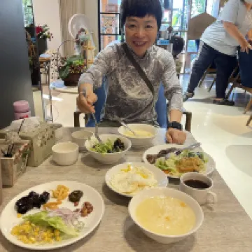 早餐有煎蛋,豆漿,炒冬粉,炒青菜,沙拉,芝麻包.. 下午茶有金桔茶,洛神花茶,西瓜,魯蛋.. 晚上有綠豆湯,米粉湯,魯蛋,飯店的住宿價格也很實在,還有泡湯,已經來住過好幾次。