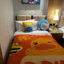 帶爸媽出來旅行,前台小姐姐和我電話聯繫的時候聽我聲音大概以為我帶孩子出行,給我們安排了攜程小鴨子親子間,真是一個可愛的誤會。房間裏面各種小設定都是小鴨子的,如果帶着孩子應該小朋友會很喜歡。房間的衞生真的很好,我習慣性用醫用掃床刷刷了一遍,沒有一點兒灰塵。酒店前台小姐姐入住和退房時候服務都很好,早餐很豐富,酒店裡麪的香氛味道也很好聞,洗衣機洗衣服也很乾凈,總體而言都非常滿意。