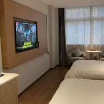每次來義烏都會住在這裏, 價格很實惠,衞生非常的乾淨。阿姨很熱情。打掃的很仔細。前台接待非常的專業又熱情。有問必答。周邊環境非常不錯。有吃的玩的。服裝市場。美食街。雞鳴閣。樓下有24小時便利店,葯房。旁邊有很多私廚。房間的設施完善,智能客控。非常的簡單好操作。非常值得推薦的一個酒店。