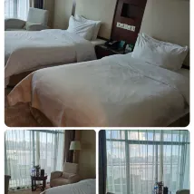房間傢俱陳設和裝飾有點年代感,部分設施顯得有點老舊,比如電視衹能看有線電視且畫質感人,淋浴噴頭是固定的且衹能站在浴缸裏洗(這點看其他客人的評價裏提到似乎有一些房間是有淋浴間的?總之服務員沒有提過) 環境算是不錯了,房間配有江景陽台,晚上逛完景點回來臨江對月小酌一番也別有風味,就是前面的馬路車來車往有點吵(落地窗隔音效果可以,晚上沒有出現其他客人評價説的吵得睡不着的問題) 服務方面有點微妙...雖然遇到的服務員也都禮貌熱情,但是住了一天遇到三件讓我哭笑不得的事:1、當天下午明明已經辦了入住,但晚上還接到酒店打來的電話問我預訂的房間何時入住;2、電視不能看網絡機頂盒但是默認開機顯示機頂盒畫面,以為是故障了請了一位服務員大姐過來調試,調試時為了方便她搬開了電視櫃,結果調試完她出去我一看電視櫃居然沒搬回原位;3、早餐時想點份撈麪,第一次叫大姐要了份細粉和配菜,細粉放了配菜可能沒聽見沒放,過了一小會大姐又抬頭問我要什麼,於是我又點了一次配菜,這次放了,放進了另一個鍋裏...又過了一會大姐把第一次那份細粉撈出來了,問我要什麼,我説我要細粉,她指着剛撈出來的那份説這就是,我衹好默默地把那份衹有白菜的細粉端走了...