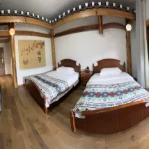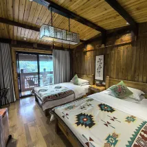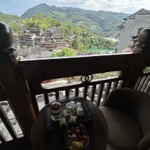 Lors de notre arrivée à l’hôtel, bien que des difficultés de communication par rapport à l’anglais, les hôtes ont réussi à nous communiquer toutes les informations nécessaires. Nous avions initialement réservé 2 chambres doubles mais nous avons été surclassés sur 2 chambres suite avec une magnifique vue sur la ville de Furong Town.